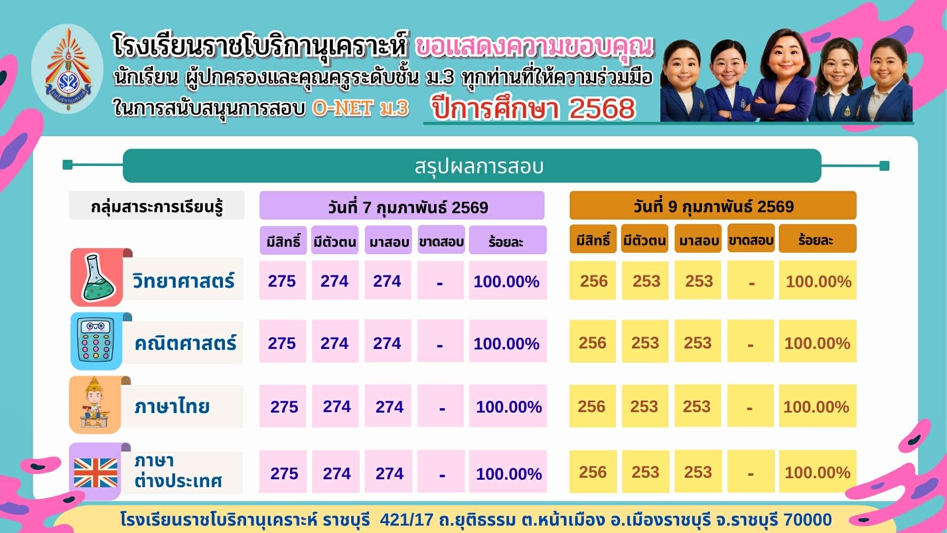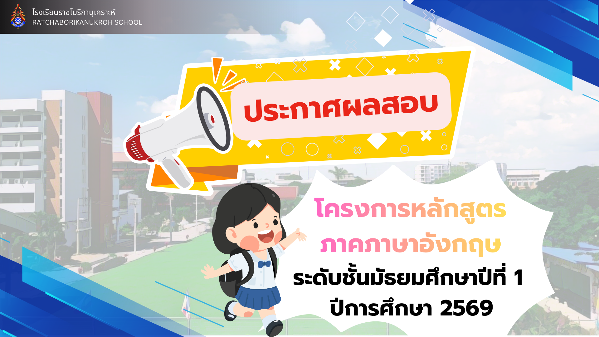 ( 24 ก.พ. 69 ) - ประกาศผลสอบนักเรียนโครงการหลักสูตรภาคภาษาอังกฤษ ชั้นมัธยมศึกษาปีที่ 1 ปีการศึกษา 2569