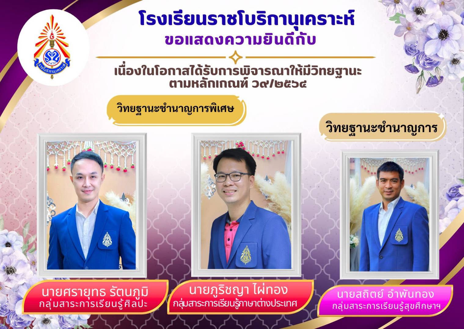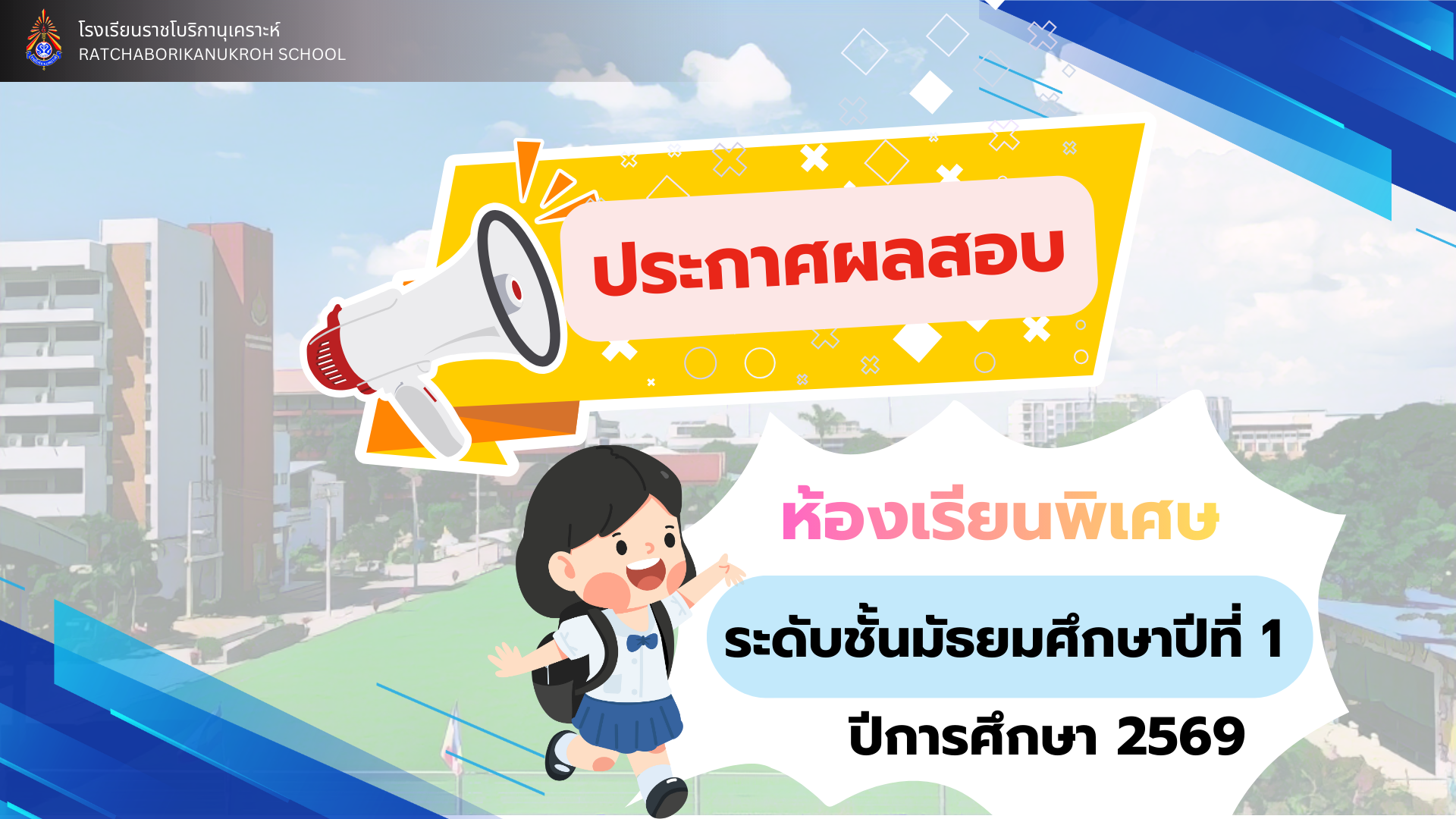 ( 24 ก.พ. 69 ) - ประกาศผลสอบห้องเรียนพิเศษ ชั้นมัธยมศึกษาปีที่ 1 ปีการศึกษา 2569